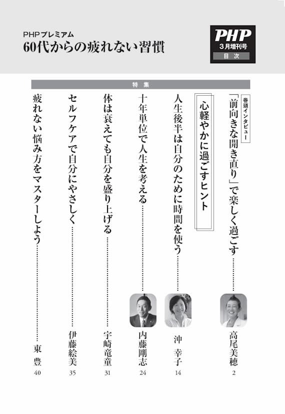 | 人生後半は自分のために時間を使う | 沖 幸子 | 14p |