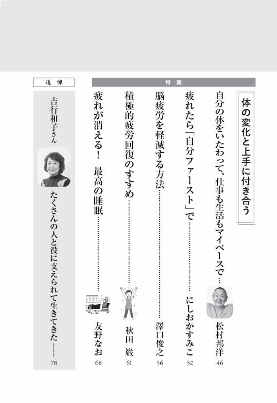 | 自分の体をいたわって、仕事も生活もマイペースで | 松村邦洋 | 46p |